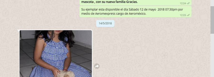Quiero agradecerles por su excelente atendimiento. Ésta fue mi primera experiencia haciendo un pedido en Internet y ustedes lo hicieron fácil para hacer llegar a mi cachorro , solo con un poco de retraso pero es muy padre nuestro lo cuidaremos cuidadosamente. gracias venta de cachorros y perros.